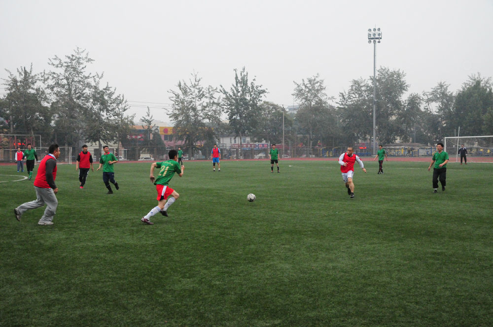 2014年10月30日晚4点,随着主裁判一声哨响,由中国政法大学、中国石油大学教职工组成的两只足球队在我校体育场举行了一年一度的友谊杯足球赛。本次比赛由中国政法大学校工会主办,为了丰富两校教职工业余生活,增进两校教职工之间的交流与合作,秉持着“友谊第一,比赛第二”的理念,聘请了专业足球裁判,进行了一场正式又激烈的比赛。