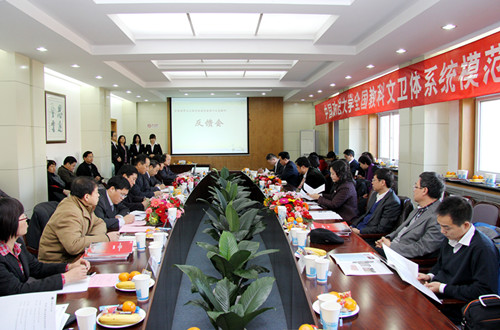 验收专家组在听取我校建家工作汇报、查阅相关资料、实地考察各单位职工家以及召开中层干部座谈会、教职工代表座谈会的基础上,在反馈会上对我校建家工作给予了高度评价,并宣布我校通过“中国教科文卫体系统模范教职工之家”验收。史利国为我校授牌。