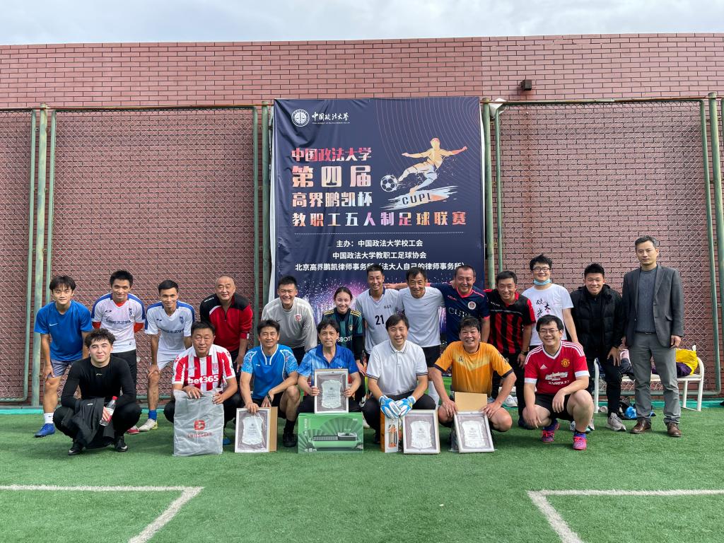 秋高气爽,日丽风清,为响应校工会推动我校群众性体育活动全面开展的号召,在学校教职员工的共同努力下,2021年9月16日---10月14日,中国政法大学第四届“鹏凯杯”教职工五人制足球联赛在这收获的季节里成功举办。