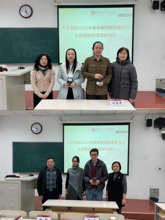 最后,俞学明院长在线上祝贺本次活动顺利举行,肯定了参赛的四位教师的优秀表现,鼓励他们进一步精进教学方法、提升教学能力。校工会副主席吴飚、学院党委书记杨军、副院长罗世琴为参赛教师颁奖。