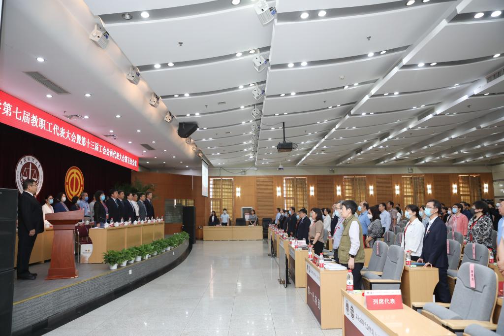 上午8时30分,校工会副主席吴飚宣布:中国政法大学第七届教职工代表大会暨第十三届工会会员代表大会第五次会议开幕。全体起立,高唱国歌。